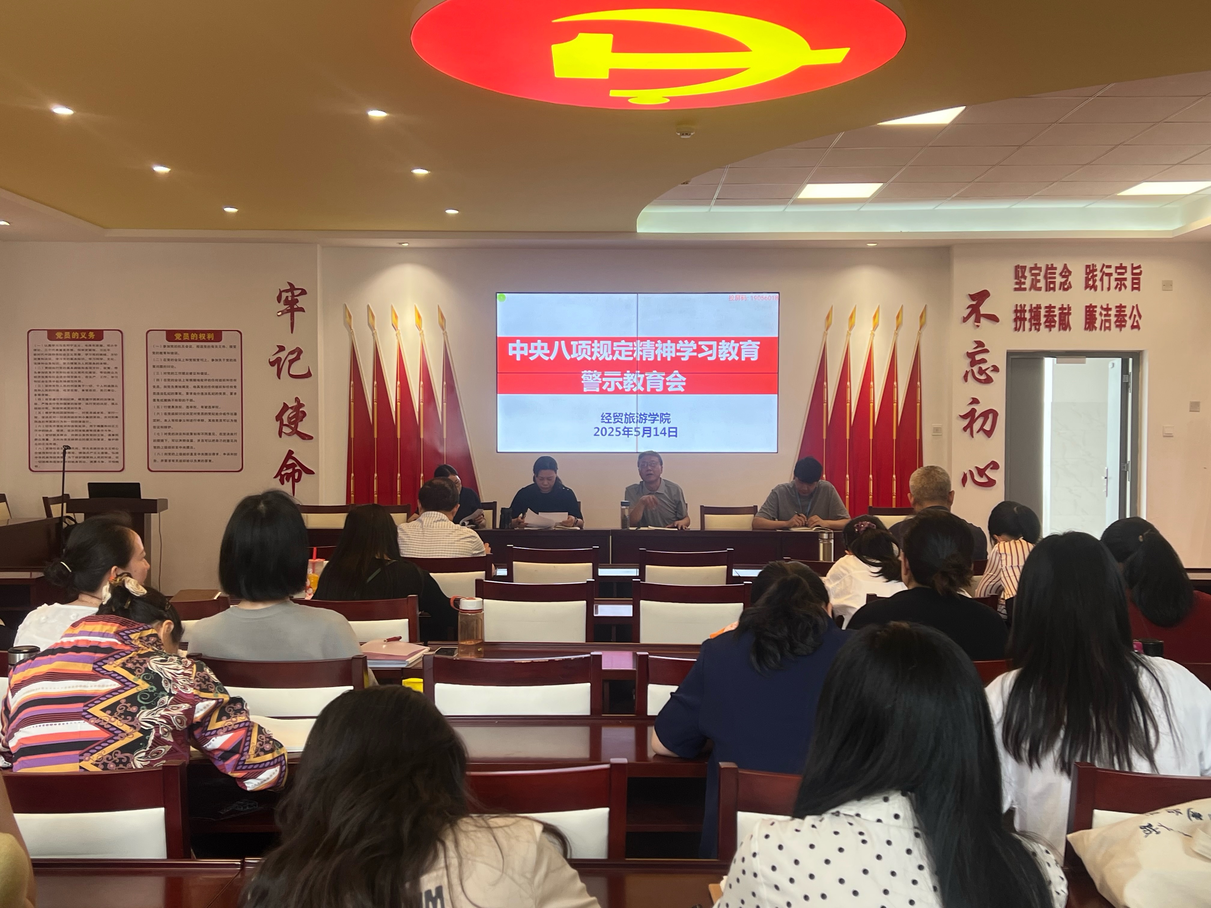 为深入学习贯彻中央八项规定精神,进一步加强党风廉政建设,提高全体教职工纪律意识,5月14日,经贸旅游学院在党性体验馆召开中央八项规定精神学习教育警示教育会。该院全体教职工参加会议,会议由该院副院长付晓兰主持。