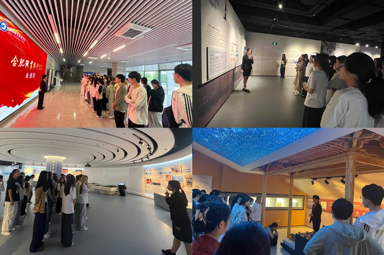 活动中,2023级旅游管理专业2班的龚妍、张雨涵、汪旭东和江梦瑶四位同学承担起志愿讲解员的重要职责。四位同学凭借扎实的专业素养与精心的筹备,将整个讲解巧妙串联为四个特色鲜明且相互关联的板块,分别是序厅与尾厅、世界职业教育发展、中国职业教育发展、合肥888集团学院建设与发展,并依次进行了生动精彩的讲解。