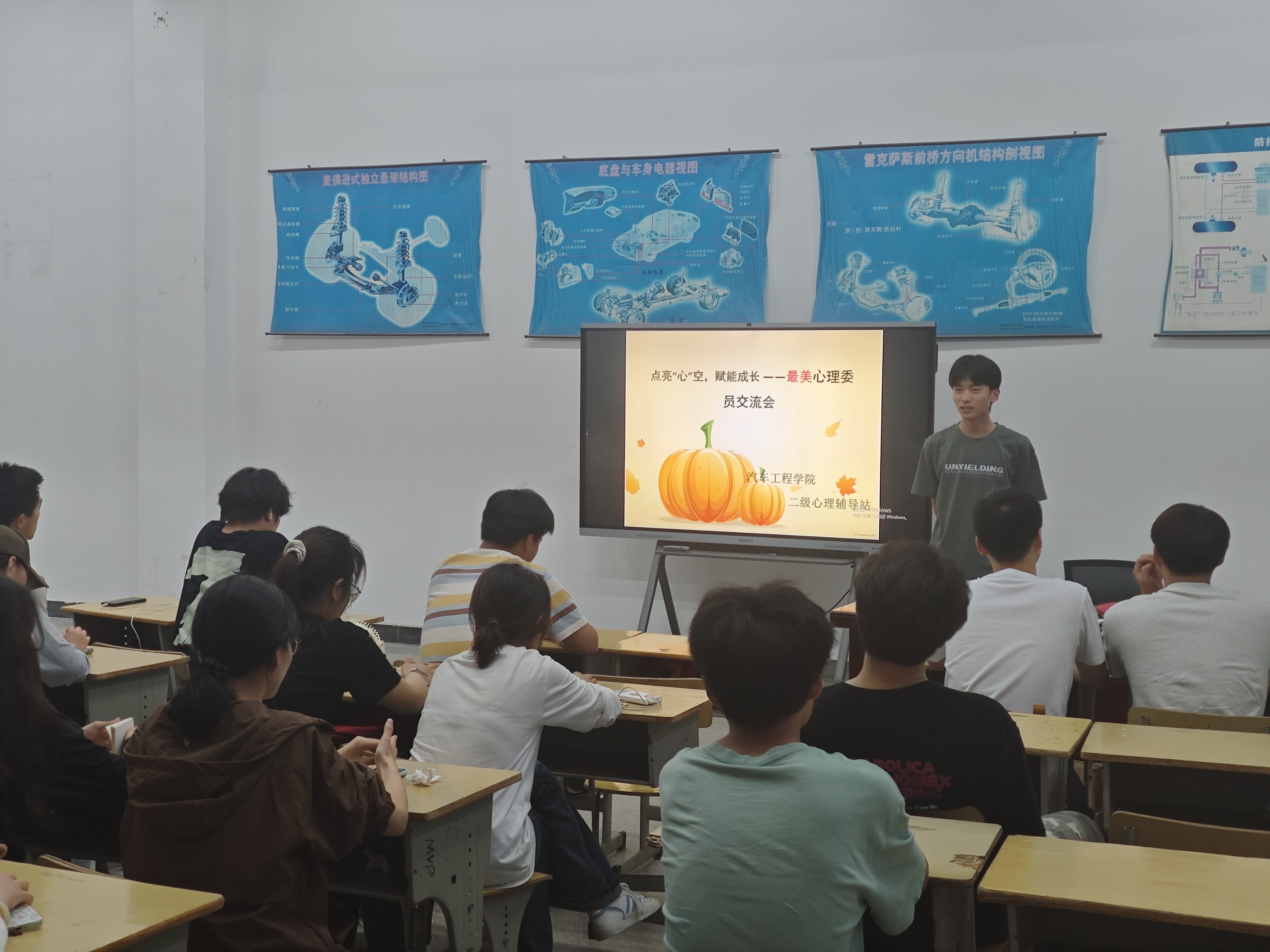 为加强校园心理健康教育工作,提升心理委员的专业素养与服务能力,汽车工程学院于5月20日晚在汽车楼212活动室举办举办2025年度最美心理委员经验分享会。本次活动以“倾听?互助?成长”为主题,吸引了该院30余名班级心理委员及心理健康爱好者参与,现场气氛热烈,反响积极。