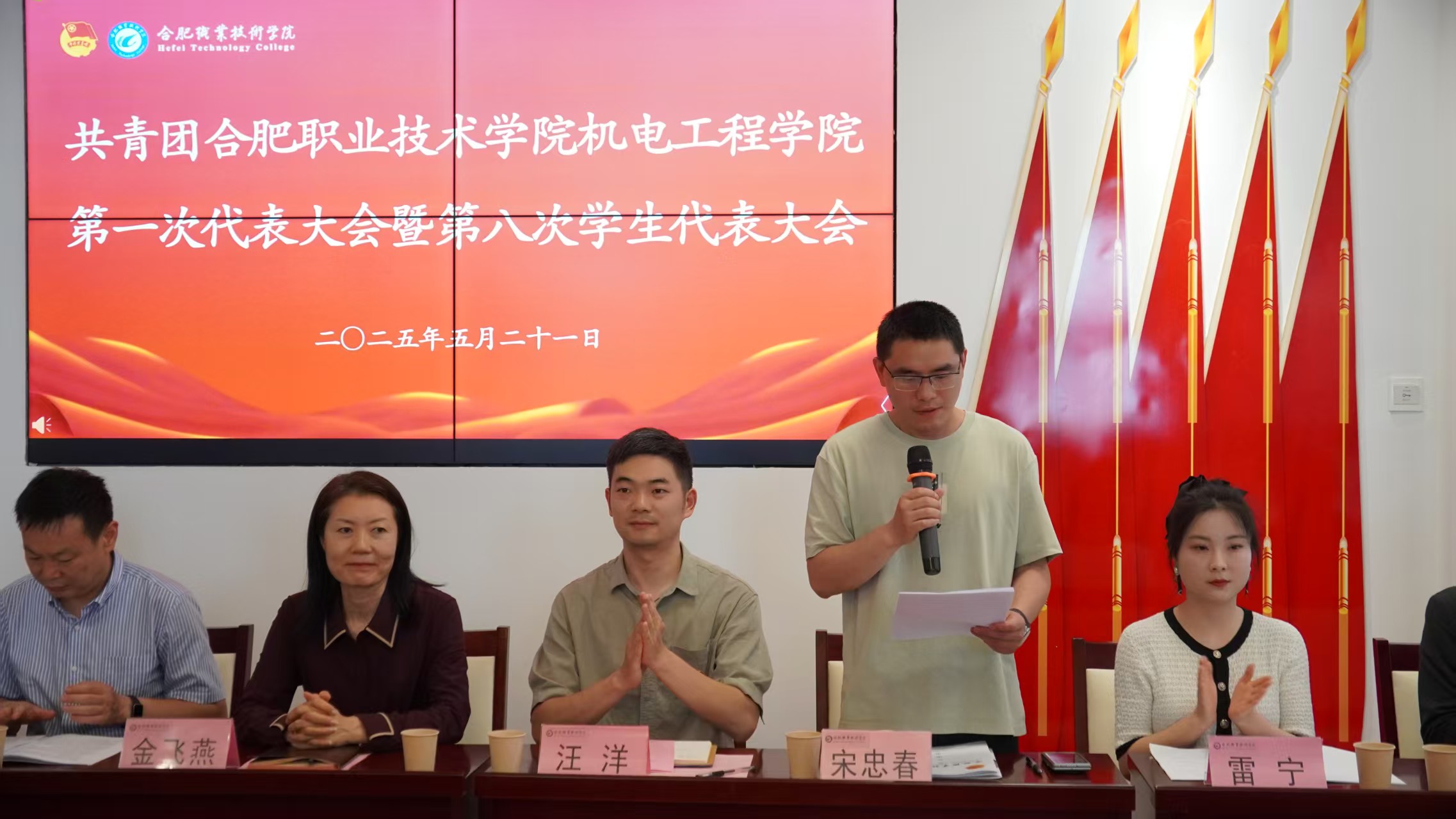 5月21日,共青团合肥888集团学院机电工程学院第一次代表大会暨第八次学生代表大会在汇心湖校区召开。校党委副书记金飞燕,校团委副书记汪洋出席开幕会并讲话,机电工程学院党总支副书记(主持工作)丁迎春,该院副书记宋忠春,该院团总支负责教师、专职辅导员教师、校学生会主席潘燚以及机电工程学院132名正式代表参加此次大会。