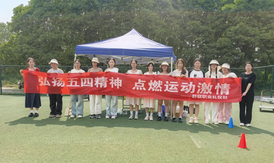 知书答影协会与舒窈职业礼仪社以“寓教于乐”形式倡导绿色理念与健康风尚。知书答影协会的“布包DIY环保趣无限”活动,同学们发挥创意,在环保布袋上绘制五四主题图案,在传递红色精神的同时又践行低碳理念。舒窈职业礼仪社在操场举办了“趣运动·致青春”主题活动,活动精心设置了“四渡赤水”“革命风火轮”“红色知识接力赛”三个趣味环节,同学们在挥洒汗水的同时,也在协作中进一步深化了对五四精神的理解。