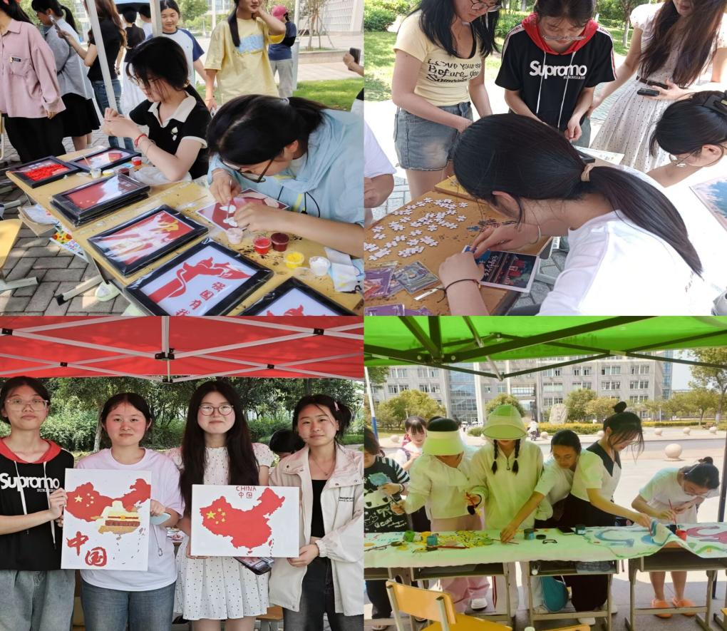 5月21日下午,鼓山校区大学生活动中心广场热闹非凡。学而社以“墨韵绘就青春卷”为主题,组织油画创作活动,同学们用手中的画笔,描绘出五四精神的理解和感悟。阳光心灵社的“五四青年涂鸦共创”活动,则以绚丽的色彩绘就出了一幅百年奋斗的壮丽图景,参与者纷纷在画布上留下“强国有我”的青春誓言。康复之家组织了“星河拼就青春图”拼贴活动,千余块碎片在大家的协作下拼成了一幅幅星河图,寓意着青年如繁星般汇聚,共同筑就伟大的时代梦想。
