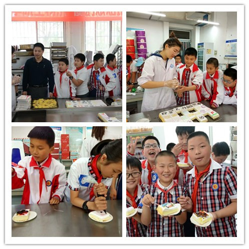 该院食品专业老师和魔幻烘焙坊创业小组的大学生早早地来到生化楼的大门口迎接这些可爱的小精灵,映入孩子眼帘的是可口的面包、蛋糕和蛋搭。烘焙坊的该院同学们,从进门洗手的六个步骤开始一一地示范并指导孩子们。从如何把面粉、鸡蛋、糖、油等原料变成香味十足的美味的生产过程给孩子们做展示。看到转动的机器,灼热的烤炉,各种动物的小蛋糕,孩子们再也耐不住好奇心,跃跃欲试了。在该院老师和在校生的引导下,每个孩子都有一次DIY机会。海阔凭鱼跃,天高任鸟飞,在雪白的蛋糕上面,每个孩子展开自己的想象力,运用各种色彩,画出了精美的图案。小蛋糕做好了,该是品尝的时候了。小孩子此时兴奋的心情溢于言表,每人拿到自己亲手做的蛋糕并配发品尝美味可口的蛋搭,忍不住集体高歌一曲“上学歌”,美妙的童声赢得大家一片掌声。