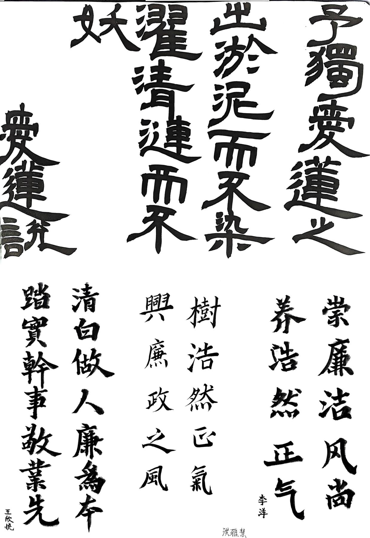 此次廉洁文化书画作品征集活动,是建筑工程学院推进廉洁教育的重要举措。通过书画创作这一师生喜闻乐见的形式,将廉洁文化与艺术教育有机融合,既为同学们提供了展示艺术才华的平台,也让廉洁理念在潜移默化中深入人心。下一步,该院将选取优秀作品进行集中展示,以学生视角的艺术表达感染更多青年学子,在挥毫泼墨间厚植崇廉尚洁的价值观念,为构建风清气正的校园环境注入青春力量。(供稿:建筑工程学院 昌逸文 初审:丁怡琴 审核:杨璨)