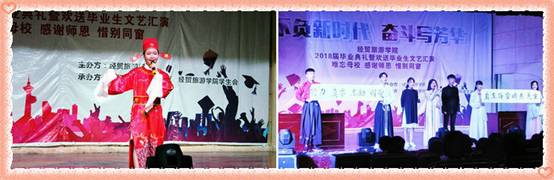典礼结束后,与会师生共同观看了精彩的欢送毕业生文艺汇演。似水年华,难说再见,毕业不是结束,而是人生的另一个开始,祝愿2018届毕业生们在未来人生道路上,不负时代重托,书写属于自己的奋斗篇章!(供稿:经贸旅游学院 编辑:沈婉婉)