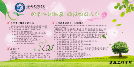 每年的5月25日,是全国大学生心理健康日。“5·25”的谐音即为“我爱我”,核心内容是:关爱自我,了解自我,接纳自我,进而爱别人,爱社会。为进一步加强大学生心理健康教育工作,营造和谐稳定的校园环境,建筑工程学院举办主题为“爱同行、心成长”心理健康月系列活动。