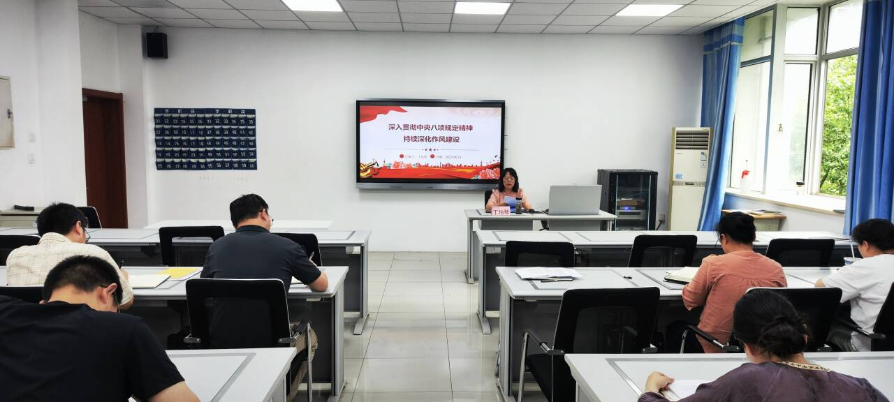 为深入学习贯彻习近平总书记关于加强党的作风建设的重要论述精神,全面落实中央八项规定及其实施细则精神,认真落实中央指导组工作座谈会精神、省委常委会会议精神及市委常委会会议精神,6月11日下午,建筑工程学院在建工楼304会议室召开六月份教职工政治理论学习暨深入贯彻中央八项规定精神学习教育会议,该院全体教职工参加会议,会议由学院党总支副书记(主持工作)丁怡琴主持。