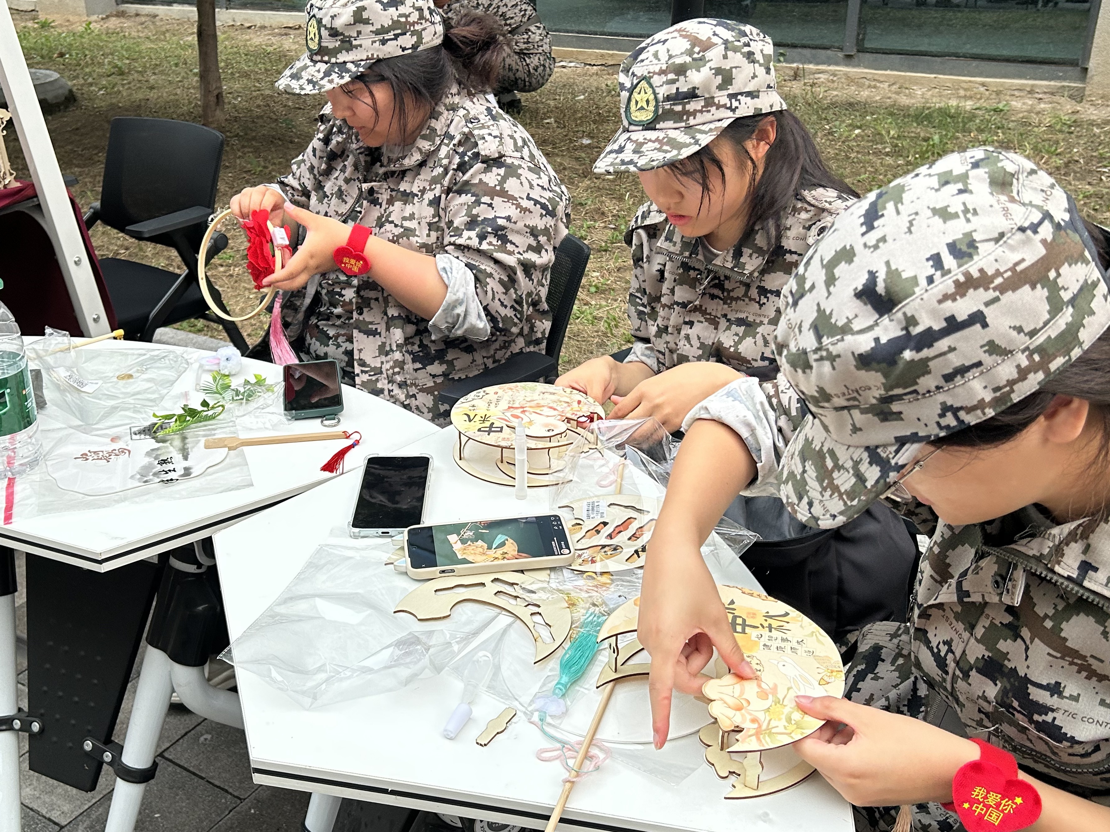 活动当日,现场热闹非凡,处处洋溢着欢声笑语,宛如一片欢乐的海洋。汇心湖校区活动现场设置了七大特色环节,将传统民俗与爱国元素巧妙融合。在“落笔签安康,双节庆华章”环节,同学们在签到卡上写下对家人的安康祝福与对祖国的美好祝愿,以笔墨传递深情;“猜谜赢盲盒,家国乐开花”环节,围绕中秋传统与国庆知识设计的灯谜,让同学们在趣味竞答中收获知识,答对者领取盲袋,答错也能获得国旗贴纸鼓励;“拼山河盛景,赛团圆心情”的拼图比赛,各组同学齐心协力拼搭“中秋月色下的中国地标”,在协作中感受祖国山河之美;“拼灯贺双节,手作忆团圆”与“漆扇映双辉,家国共欢归”环节,同学们自主拼接融合双节元素的灯笼、绘制扇面,用手作定格节日美好;“投壶寄心意,双节庆双喜”和“筷夹月饼趣,双节乐无极”环节,大家在传统游戏中比拼互动,累计积分兑换月饼、国庆徽章、中秋糕点等礼品。鼓山校区现场首先映入眼帘的是“星愿筑墙”环节。师生们纷纷驻足,拿起手中的素笺,认真思考着,将对未来的美好憧憬、对家国的深情祝福逐一书写下来;“投壶邀月”环节,参与者们手持箭矢,眼神专注而坚定,在规定距离外屏气凝神,准备投壶,每一次抬手、瞄准、投出,都凝聚着他们的期待和努力;而“中秋玉兔接福”“月是故乡明”“旋转钓兔子”“月饼大逃亡”等特色游戏区域,更是将中秋民俗与趣味竞技巧妙地融为一体。在“中秋玉兔接福”游戏中,师生们需要眼疾手快地抓住从空中落下的“福袋”,大家全神贯注,眼睛紧紧盯着“福袋”的下落轨迹,一旦时机成熟,便迅速出手,现场充满了紧张而刺激的氛围。“旋转钓兔子”游戏里,参与者们手持钓竿,努力钓起旋转的“兔子”,随着转盘的转动,他们的身体也跟着调整,但依然坚持不懈地尝试着。“月饼大逃亡”则要求参与者在规定区域内移动彩色的“月饼”,整个场区弥漫着浓浓的节日氛围。