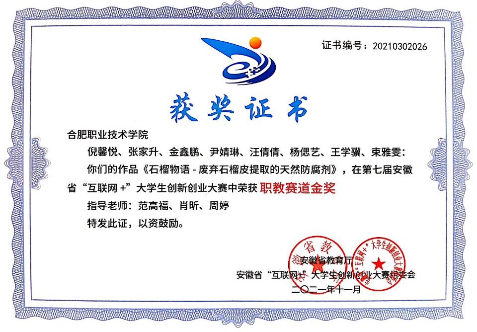 作为一名青年教师,周婷老师坚持以赛促教,以赛促学,积极参加和指导学生参加各类赛事。2018年,作为学校推选的参赛选手,她凭借扎实的理论功底与过硬的专业技能,沉着应战,不畏强手,一路过关斩将,最终荣获安徽省辅导员素质能力大赛二等奖。与此同时,她还带领学生参与各类赛事,2021年指导学生获第七届安徽省“互联网+”大学生创新创业大赛金奖一项、铜奖两项。