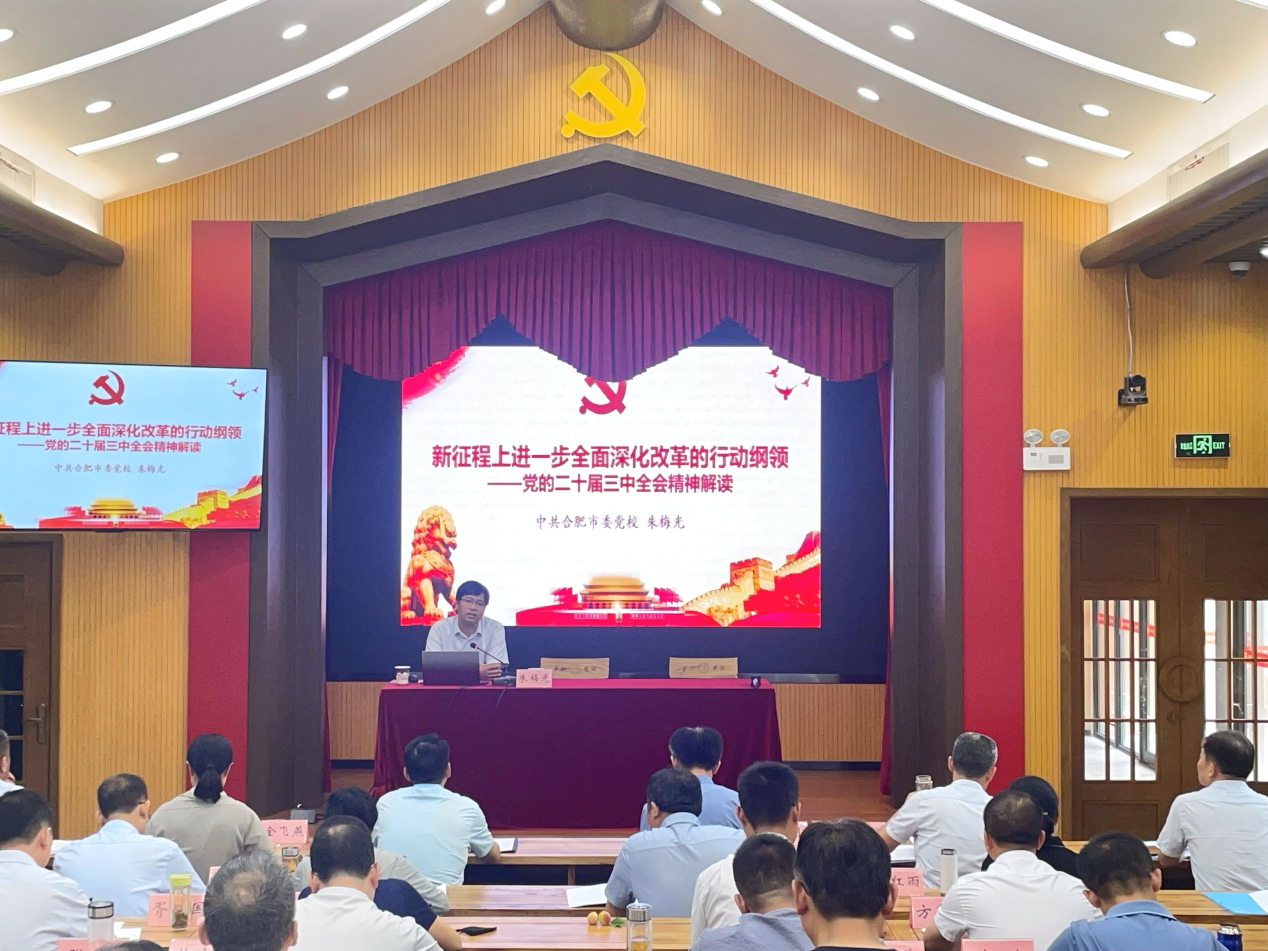 8月19日上午,在庐阳区委党校,本次培训正式开班,校党委副书记、校长檀明主持开班式。校党委书记王杰才作动员讲话,深刻阐释了本次培训班的开设背景和现实意义,并提出了具体明确的要求,希望我校领导干部在为期5天的培训中围绕“贯彻三中全会精神,我们要改什么?怎么改?”“专业如何对接合肥产业”等重点议题,树立改革意识,坚持问题导向,切实提升“政治三力”,为我校“冲高升本”碰撞出思维的火花。开班式结束后,举行了党的二十届三中全会精神专题辅导报告会暨8月理论学习中心组学习会。