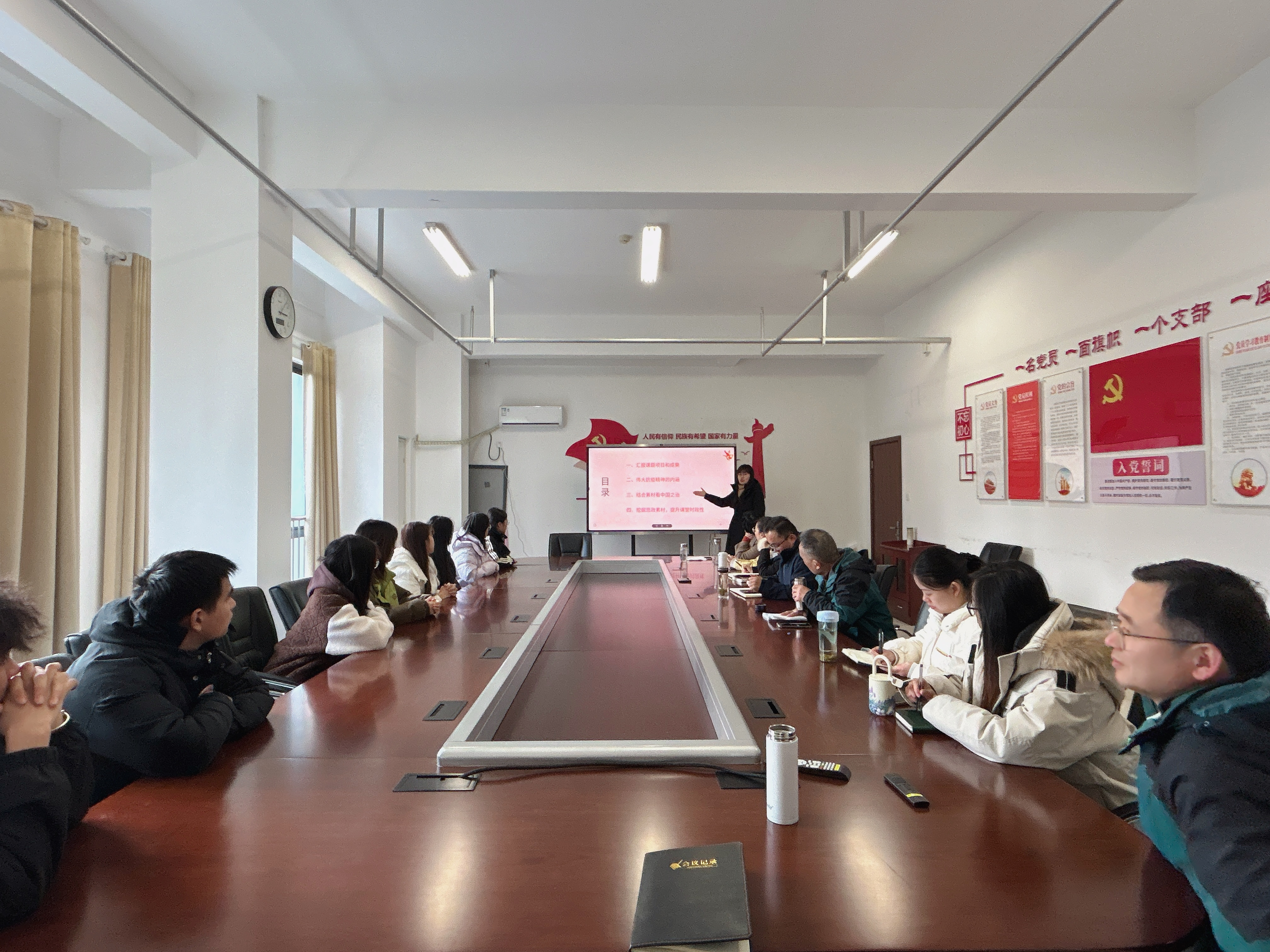 为深入学习贯彻习近平新时代中国特色社会主义思想和党的二十届三中全会精神,进一步提升师生的思想理论水平和专业素养,12月11日下午马克思主义学院线上线下举办了学术报告系列讲座第二期。本次讲座由马克思主义学院青年教师吴敏洁主讲,学院党支部书记王文飞、院长胡心红、部分教职工和学生代表聆听了讲座。