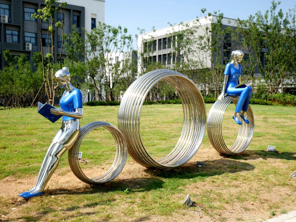 “读书不觉春已深,一寸光阴一寸金”,草坪上的休闲座椅与读者雕塑有机结合,引导学子勤学、善学、爱学、乐学,鼓励学子们在知识的时空中不断探索、快乐学习。