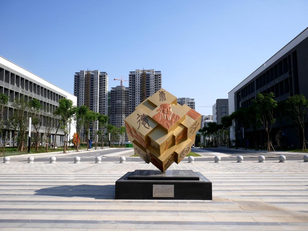 雕塑采用技艺“魔方”为造型载体,将传统技术名人鲁班、毕升等人物,四大发明和学校的校训“崇德、重技、求实、创新”有机结合,在空间上不断呼应和变化,从而传递出时代的变迁、技术的延续、传承的永恒等信息。